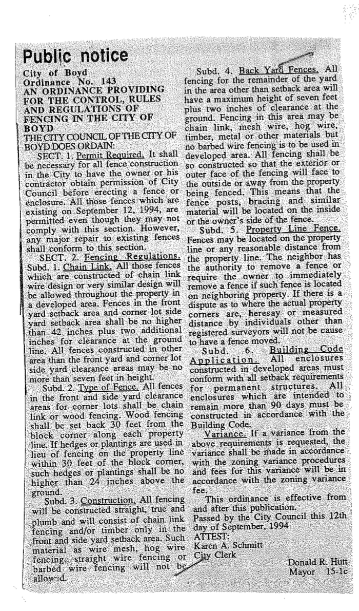 Ordinances being worked on and updated for the City of Boyd